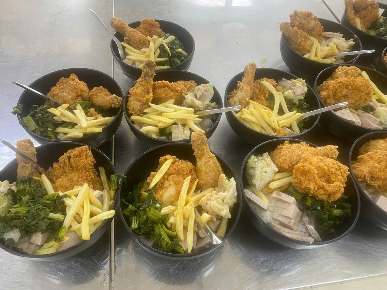 Những phần ăn được chuẩn bị chu đáo, đảm bảo dinh dưỡng, phù hợp với tình trạng sức khỏe của từng đối tượng. Sự bổ sung các món ăn quen thuộc, được nhiều người yêu thích như gà rán và nước ngọt không chỉ làm phong phú thực đơn mà còn mang đến niềm vui giản dị cho các nạn nhân trong ngày đặc biệt này.