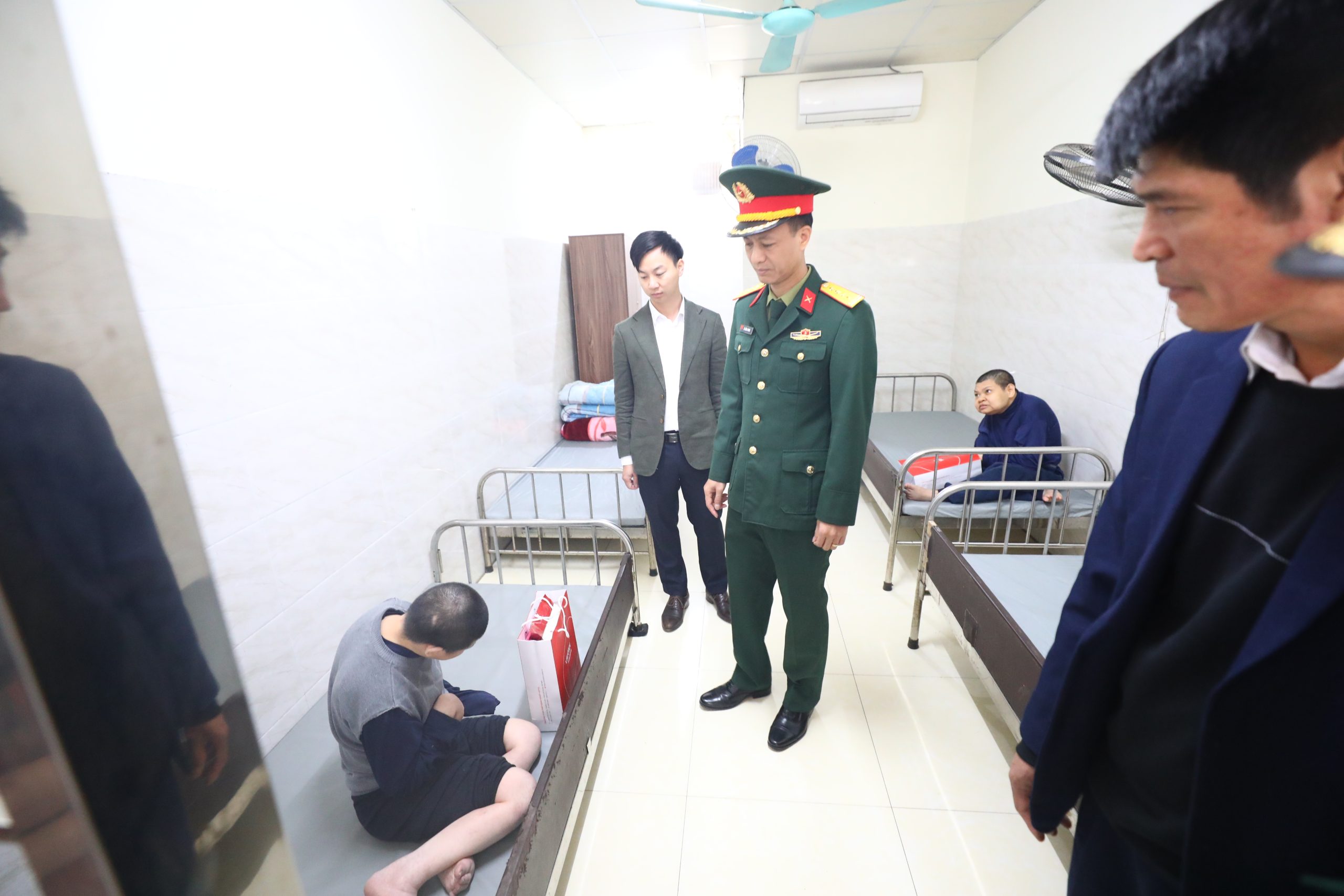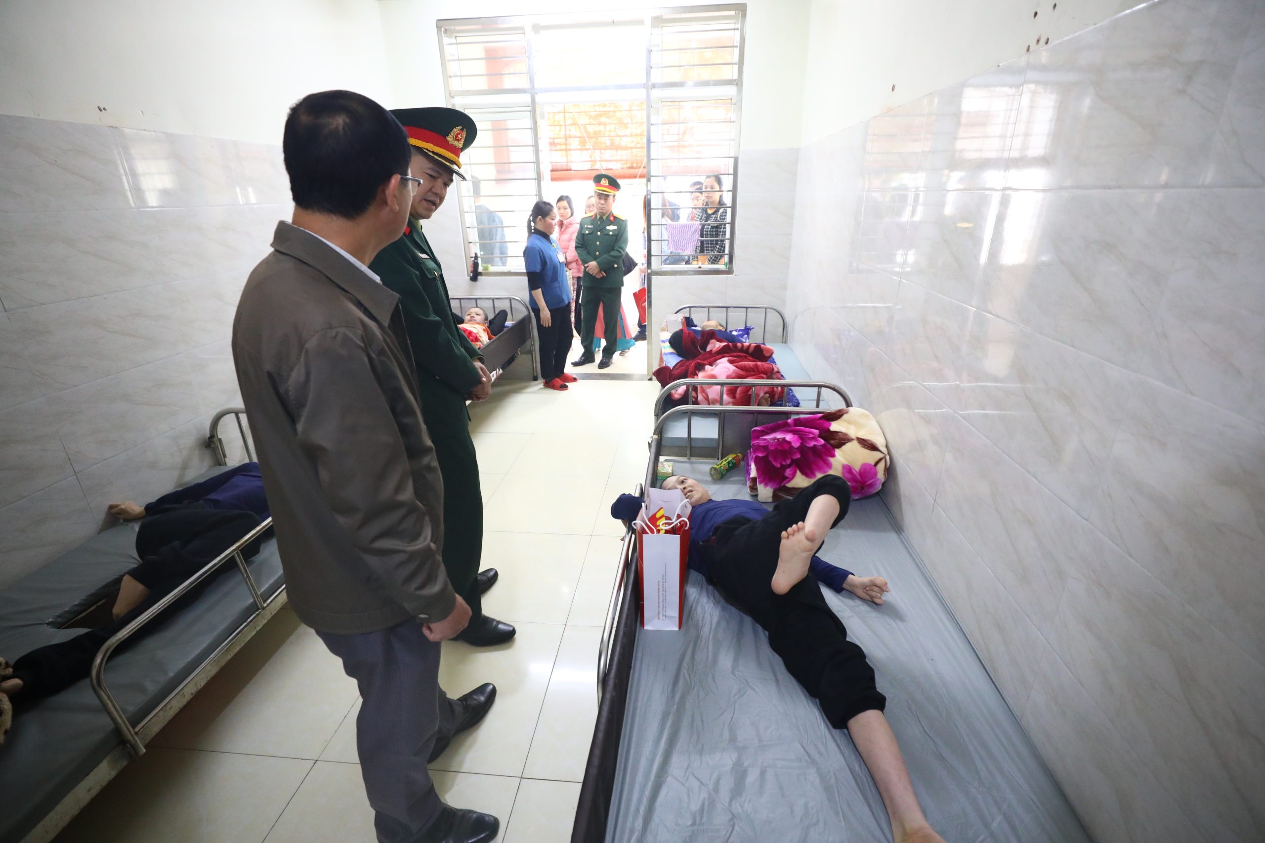 Chia sẻ với đoàn công tác về tình hình đơn vị, đồng chí Lê Quý Lâm cho biết Trung tâm hiện là đơn vị duy nhất tại Hà Nội thực hiện chức năng chăm sóc, nuôi dưỡng nội trú chuyên biệt cho nạn nhân da cam. Hiện tại, Trung tâm đang chăm sóc cho 133 nạn nhân, phần lớn đều có hoàn cảnh gia đình khó khăn, mồ côi hoặc cha mẹ đã già yếu. Di chứng chiến tranh để lại rất nặng nề, khiến 80% nạn nhân không thể tự phục vụ, mọi sinh hoạt đều dựa vào bàn tay chăm sóc của các cán bộ, y bác sĩ.