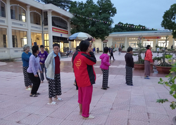 Trong không khí trong lành của buổi sớm, các cô chú, anh chị em nạn nhân da cam cùng nhau khởi động một ngày mới. Dưới sự hướng dẫn tận tình duy trì đội hình của các đồng chí cán bộ trong ca trực mọi người cùng nhau thực hiện những bài tập nhẹ nhàng: xoay khớp, vươn vai, đi bộ quanh sân… Những bài tập ấy không chỉ giúp tăng cường sức khỏe mà còn tiếp thêm tinh thần, giúp họ cảm thấy yêu đời hơn mỗi ngày. Sự sẻ chia, yêu thương và đồng hành là liều thuốc quý giúp họ vượt qua nỗi đau, sống tích cực và hòa nhập cộng đồng.