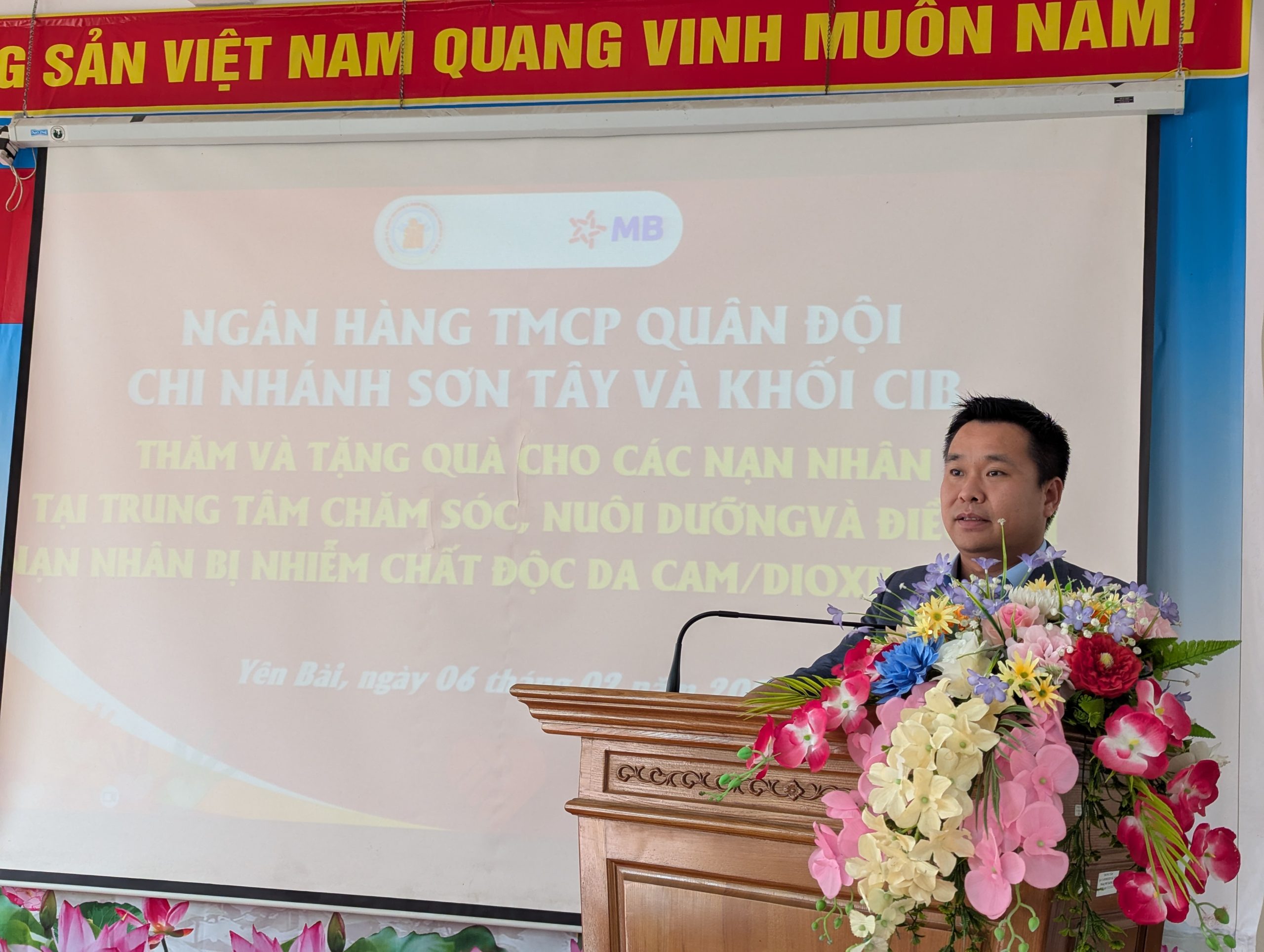 Đại diện cho đoàn thiện nguyện: Ông Nguyễn Xuân Hội đã phát biểu chia sẻ về ý nghĩa của hoạt động. Ông cho biết, trong nhiều “địa chỉ đỏ”, Ngân hàng TMCP Quân đội – Chi nhánh Sơn Tây đã lựa chọn Trung tâm Chăm sóc, Nuôi dưỡng và Điều trị nạn nhân chất độc da cam/dioxin Hà Nội để tổ chức hoạt động thiện nguyện, bởi các nạn nhân đang được chăm sóc tại đây đều là con em của những người đã tham gia kháng chiến. Thế hệ cha anh đã dành trọn tuổi thanh xuân để chiến đấu, hy sinh vì nền độc lập, tự do của Tổ quốc, song chiến tranh đã để lại những di chứng nặng nề cho các thế hệ sau. Thay mặt đoàn, ông bày tỏ mong muốn được sẻ chia, đồng hành và góp phần hỗ trợ những hoàn cảnh đặc biệt này, đồng thời gửi lời chúc Tết sức khỏe, bình an và năm mới tốt đẹp đến toàn thể cán bộ, nhân viên và các nạn nhân của Trung tâm.