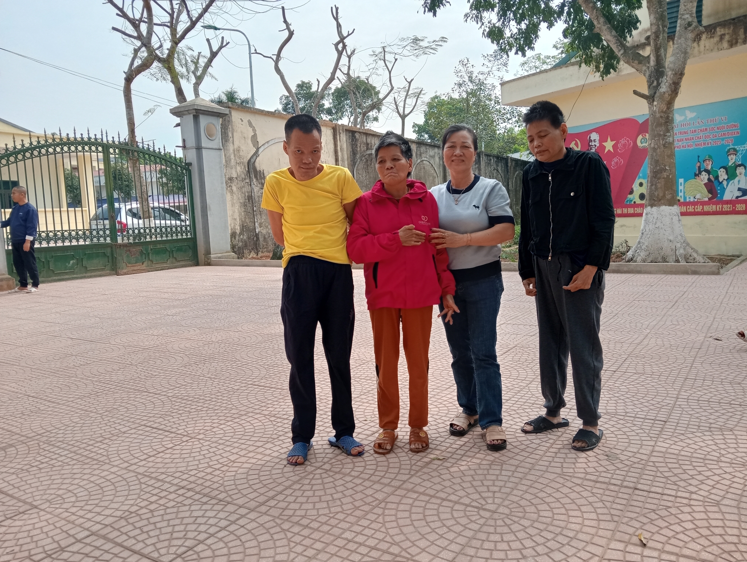 Cánh cổng trung tâm khẽ khép lại. Chị quay đi mà lòng nặng trĩu. Thế nhưng, đan xen giữa những giọt nước mắt bịn rịn của người thân, lại là những nụ cười rạng rỡ, vô tư của các nạn nhân khi vừa bước qua cánh cổng. Nhìn thấy các anh, chị cán bộ quen thuộc ân cần ra đón, em Nguyễn Ngọc Giang ngồi trên chiếc xe lăn chợt nhoẻn miệng cười tươi rói. Ba người em của chị Hải, dù mang thân hình người lớn nhưng trí tuệ chỉ như những đứa trẻ, cũng í ới khua tay mừng rỡ khi nhận ra những người đã chăm bẵm mình từng bữa ăn, giấc ngủ suốt thời gian qua.