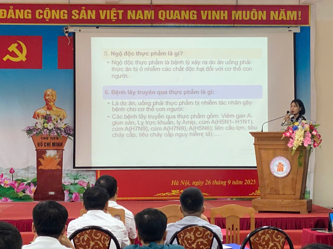 Sáng ngày 07/10/2025, Trung tâm Chăm sóc, Nuôi dưỡng và điều trị nạn nhân bị nhiễm chất độc da cam/dioxin Thành phố Hà Nội phối hợp với Trạm Y tế xã Yên Bài tổ chức buổi tập huấn về công tác đảm bảo an toàn thực phẩm cho cán bộ, nhân viên đang công tác tại Trung tâm.